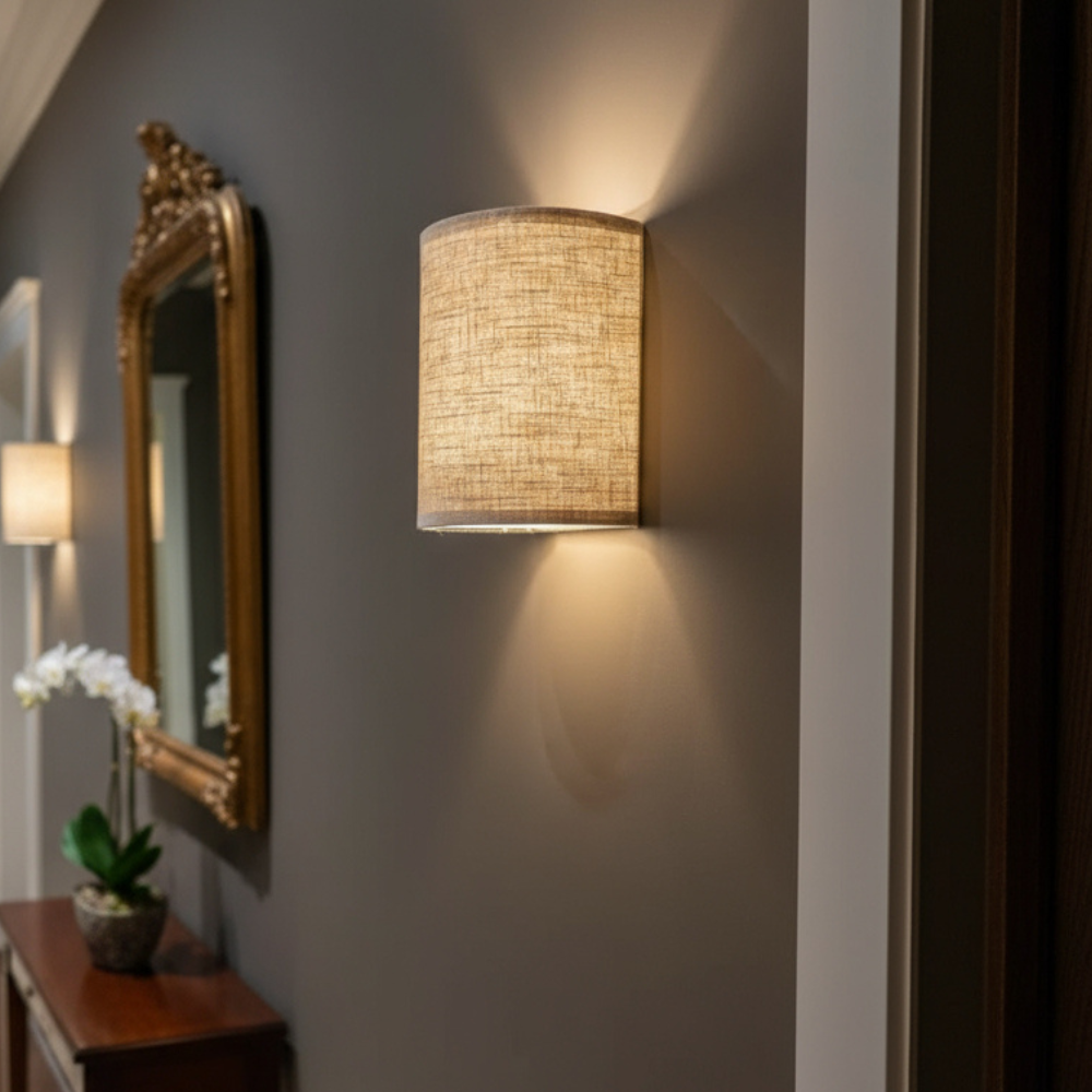 Fabricado con atención al detalle, este aplique de pared convierte la iluminación suave en una forma de arte. La pantalla de tela tejida emite un cálido resplandor ambiental que añade profundidad y calma a cualquier ambiente. Ya sea en entradas o junto a espejos, aporta una textura refinada y una luz equilibrada a su hogar.