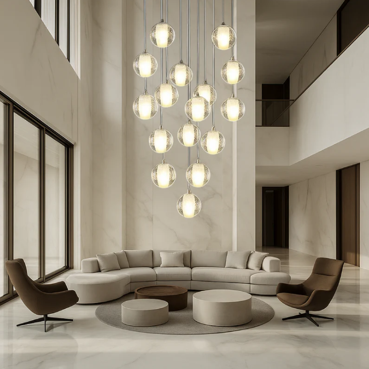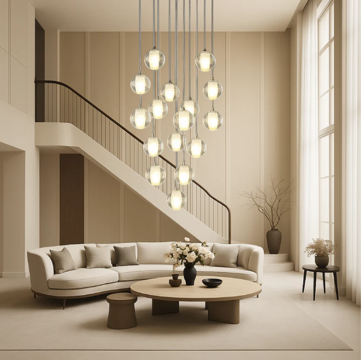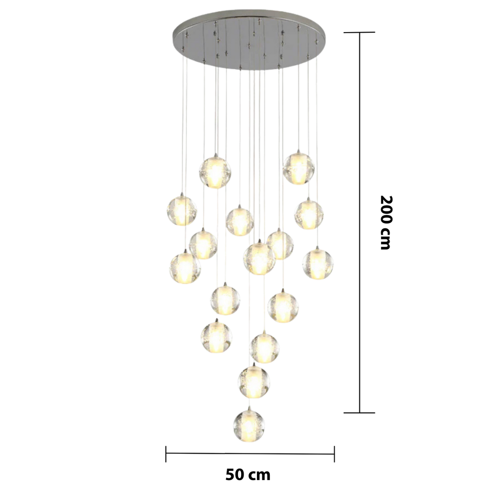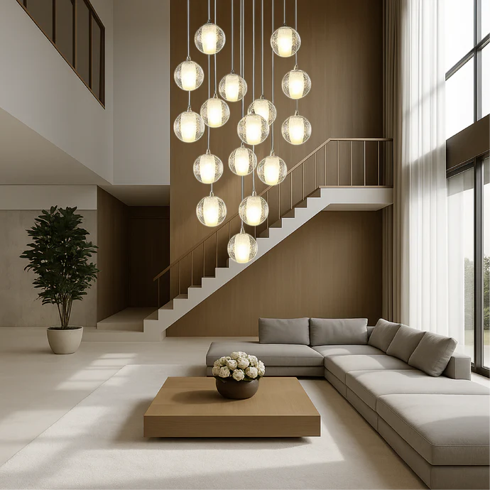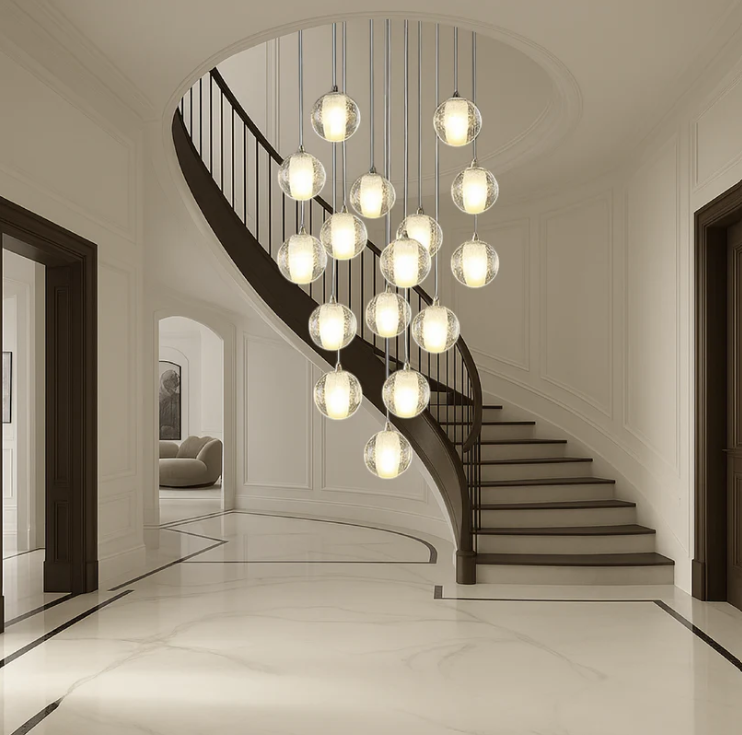 La araña de escalera Crystal ball está diseñada para emitir un resplandor cálido y agradable que llena la habitación sin resultar molesto para los ojos. Tanto si está disfrutando de una cena en la mesa de la cocina como relajándose en el dormitorio, esta lámpara crea el ambiente perfecto.