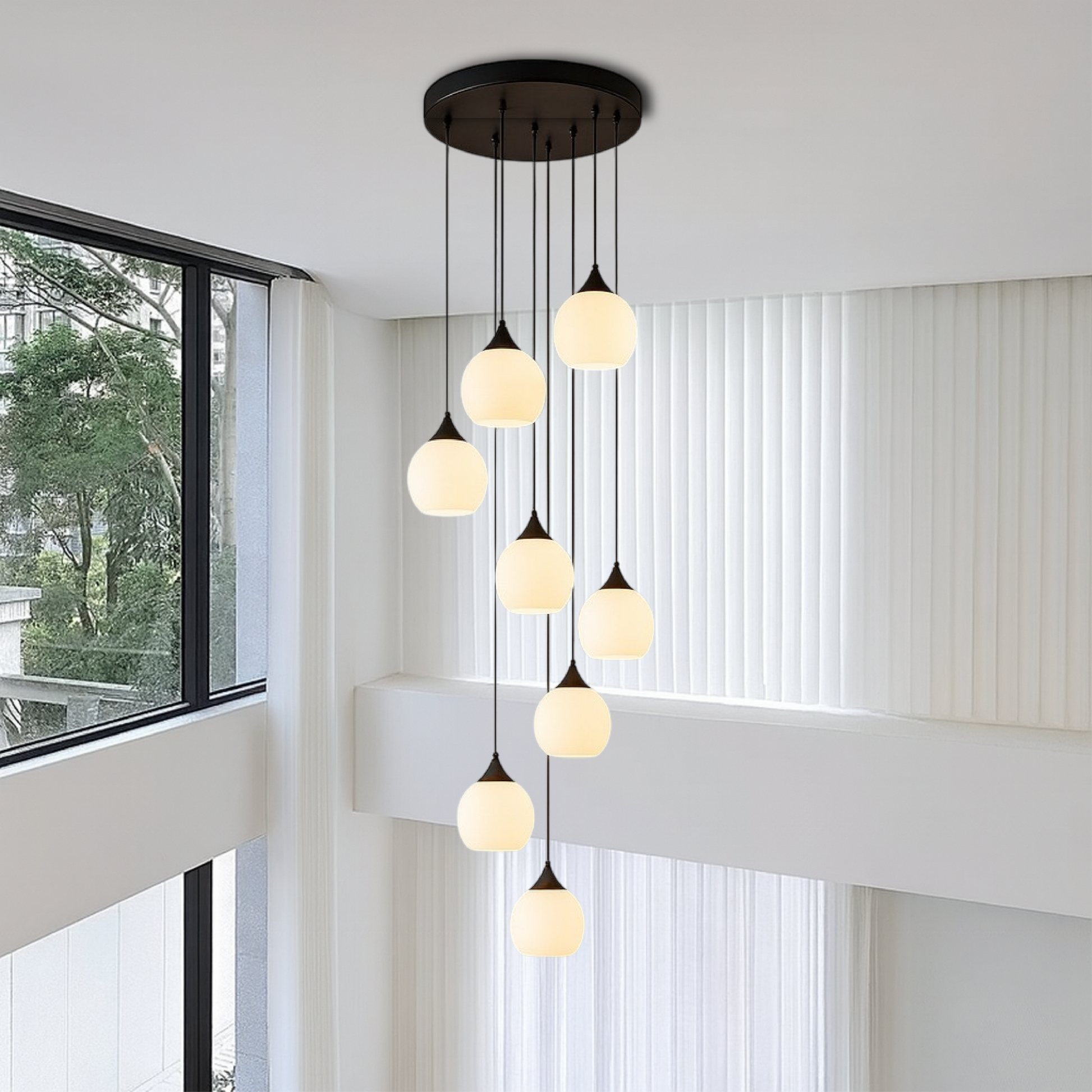 Esta lámpara colgante es más que una simple pieza de iluminación: es una declaración de estilo y armonía espacial. Diseñada para interiores amplios, como salones o recibidores de doble altura, sus bombillas escalonadas con gracia atraen la mirada hacia arriba, realzando tanto el volumen como el ambiente. Es una mezcla perfecta de forma y función para aquellos que valoran tanto la sofisticación como la comodidad.